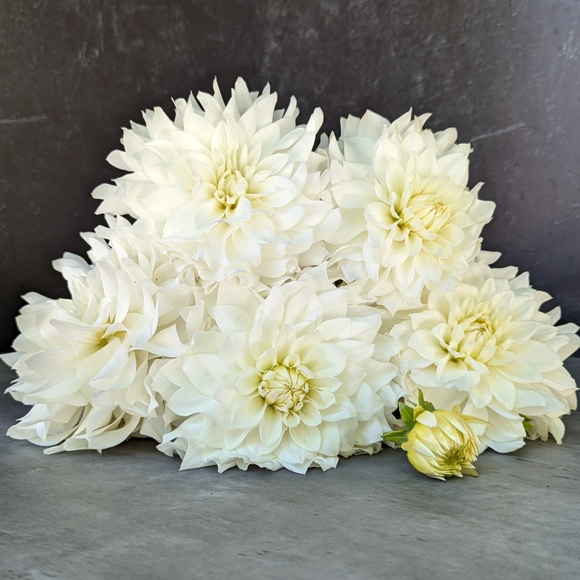 This is a mix that includes all of our favorite white varieties! Dahlia varieties include: Beaucon, Boom Boom, Blizzard. Dahlia bloom sizes range from 2-5" depending on variety.